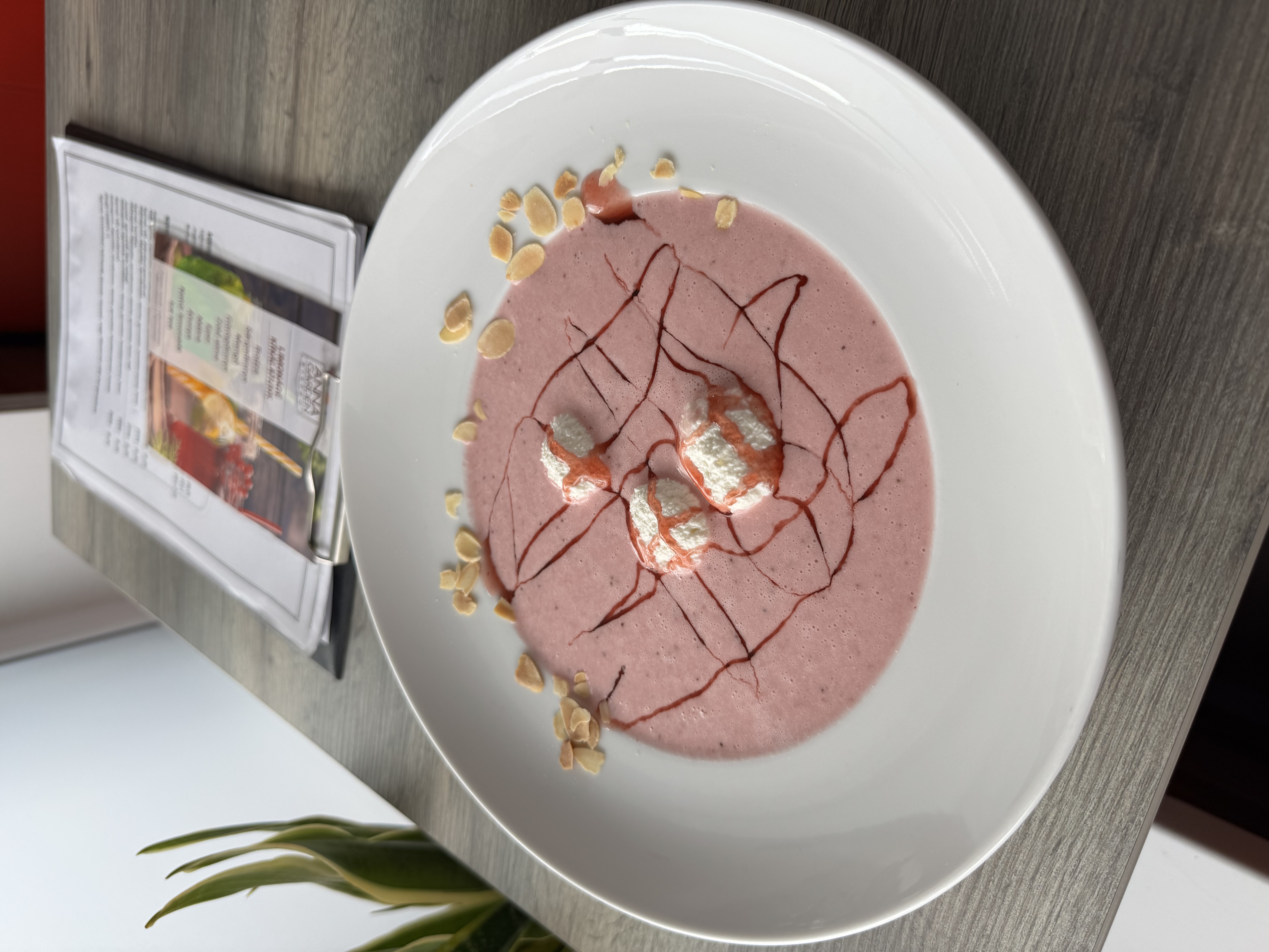 Joghurtos szamóca krémleves vaníliás túrógombóccal